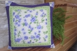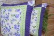 Vankúšiky sú šité patchworkovou technikou z troch druhov látok, doplnené o strojovú výšivku a sú voľné quiltované.