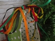 Košíček je z vonkajšej strany zo zelenej bodkovanej a z vnúrornej strany z bielej bodkovanej bavlnenej látky.