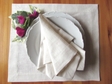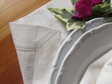 Biely ľanový obrúsok má svojom obvode zahnuté okraje a rohy obrúska sú šité do špicov.To neho vytvára elegantný štýlový obrúsok.